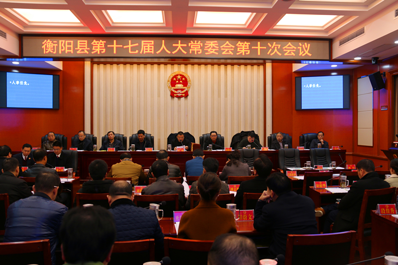 会上,刘健代表县人大常委会主任会议向会议提出了《关于提请接受阳武元等同志辞去县十七届人民代表大会代表职务的议案》。孙鹏伟向会议提出了《衡阳县人民政府关于提请免去汪衡木同志衡阳县交通运输和旅游局局长的议案》,并作免职情况说明。谢云业向会议报告了县人民法院首批员额法官遴选情况,提出了《衡阳县人民法院关于提请免去凌晓林等同志职务的议案》,并作免职情况说明。受阳武元、邓恩百两位同志的委托,县人大常委会工作人员先后宣读了阳武元、邓恩百辞去县十七届人民代表大会代表职务的报告。祝中华向会议作了辞去县十七届人民代表大会代表职务的报告。会议通过认真审议和投票表决,决定接受阳武元、邓恩百、祝中华三位同志辞去县十七届人民代表大会代表职务,免去汪衡木同志的衡阳县交通运输和旅游局局长职务,免去县人民法院凌晓林、刘义浩等27位同志的有关职务。