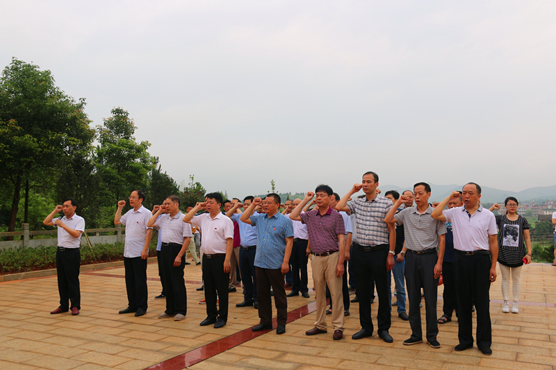 是日上午,刘健首先和县人大常委会机关党支部全体党员干部及洪市镇党委、政府主要负责人一道,来到夏明翰故居广场,重温了入党誓词。面向党旗,在领誓人的带领下,大家右手举拳,齐声跟读誓词:“我志愿加入中国共产党,拥护党的纲领,遵守党的章程,履行党的义务,执行党的决定,严守党的纪律,保守党的秘密,对党忠诚,积极工作,为共产主义奋斗终身,随时准备为党和人民牺牲一切,永不叛党。”随后,大家又步行至全国爱国主义教育基地——夏明翰故居陈列馆,在认真聆听解说员按照时间顺序,声情并茂地介绍了夏明翰的革命历程后,大家对夏明翰坚定不移的党性深受感动,并纷纷表示,在工作上要守住“底线”,不碰“红线”,永葆党的先进性和纯洁性,尽心尽力做好所分管的工作及县人大常委会的各项工作。