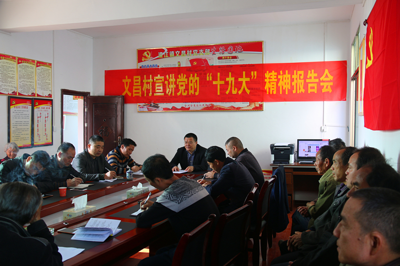 刘健要求,要明确政治任务,村党支部要制定好学习方案,党员村干部要发挥带头示范作用,有计划地组织学习好党的十九大精神,切实做到把党的十九大精神学深、学透、学精;要抓好宣传引导。要充分发挥好支部的阵地作用,创新宣传方式,广泛宣传发动,让十九大精神在文昌村做到家喻户晓、深入人心;要坚持学用结合,要坚定不移地用党的十九大精神武装头脑、指导实践、推动工作,紧密联系工作实际,重点围绕脱贫攻坚、“四冬”生产、社会稳定等工作任务抓好贯彻落实,突出抓好易地扶贫搬迁、农网改造和村级综合服务平台的建设,确保今年的脱贫任务全面完成。